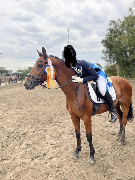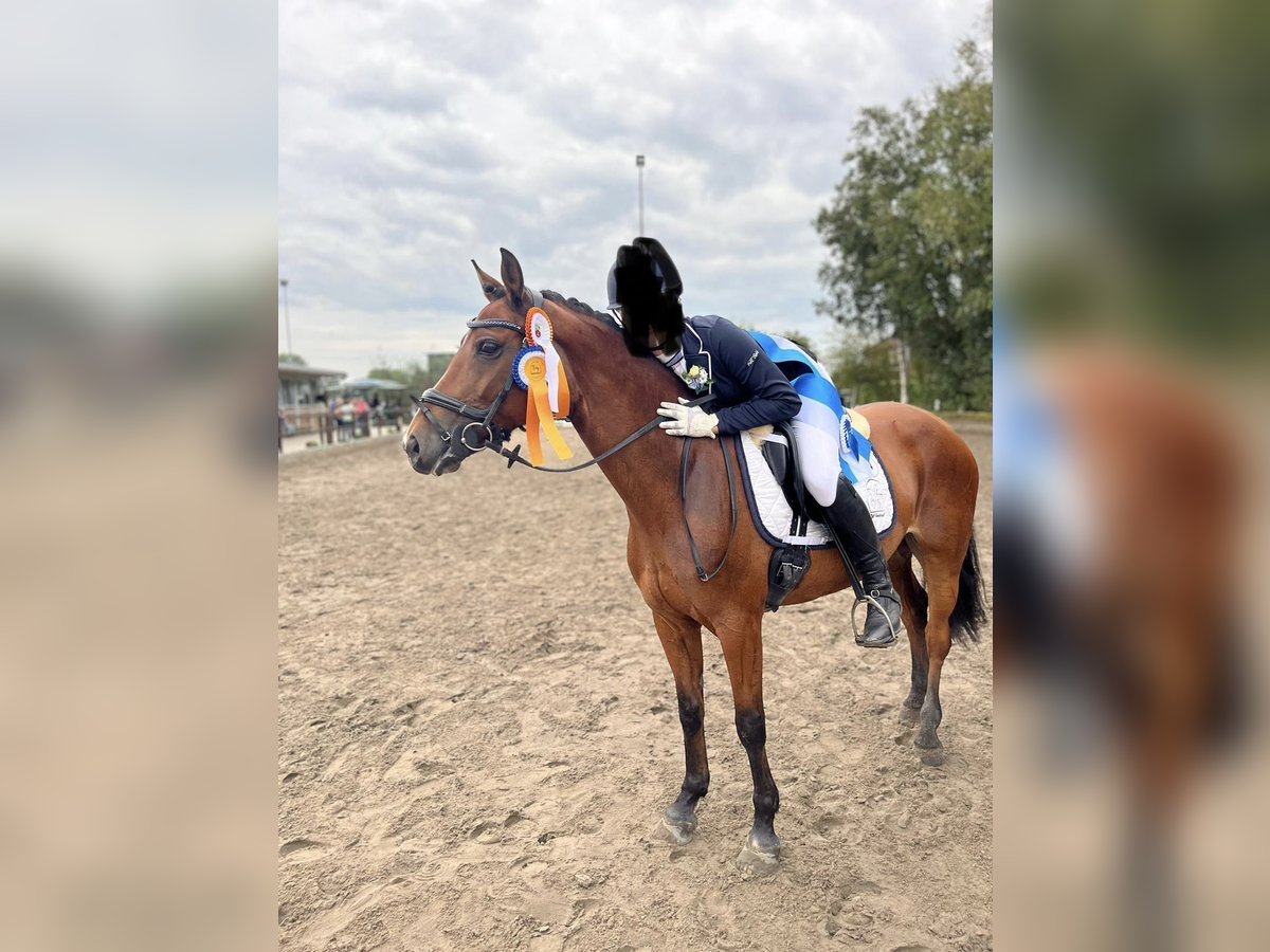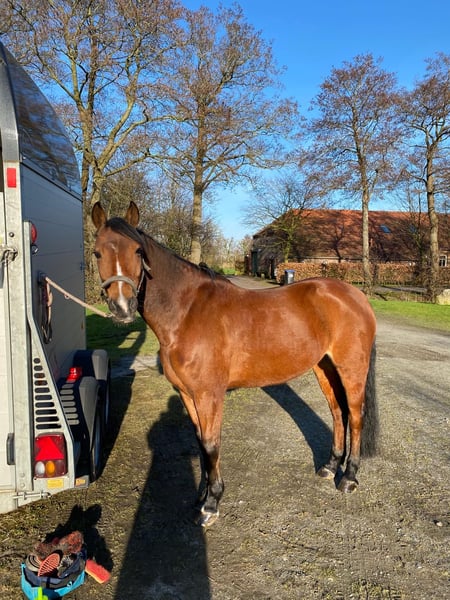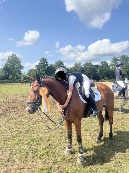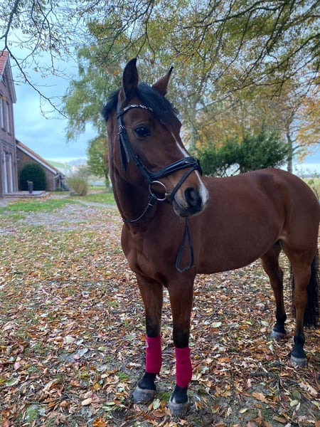 Zum Verkauf steht eine 12-jährige Deutsche Reitponystute aus dem Zuchtverband Weser-Ems. Molly ist seit ihrem 5. Lebensjahr bei uns und hat meine älteste Tochter erfolgreich durch ihre Ponyzeit begleitet, gefolgt von ihrer jüngeren Schwester, die dem Ponyalter jetzt aber auch entwächst. Auf dem Turnier wurde unser Pony im Laufe der Jahre erfolgreich von einfachen Reiterwettbewerben bis zu A-Dressuren und A-Springen vorgestellt. In der Dressur sticht sie durch ihre überdurchschnittlich guten Grundgangarten hervor und ihr äußeres Erscheinungsbild. Im Parcour bringt sie genug Go mit, bleibt aber absolut händelbar. Trotzdem ist sie kein Alleingänger im Parcour, oft fehlt ihr auch der letzte Mut und sie braucht einen entspannten und ruhigen Reiter. Im Gelände zeigt sich Molly absolut sicher und geht auch alleine über Stock und Stein. Erfahrungen in der Vielseitigkeit konnte sie auch schon sammeln. Ihre Qualität rührt von ihrer guten Abstammung von The Breast my Mobility oder mütterlicherseits von Sao Paulo (v.Sandro) her. Unser Pony steht bei uns zu Hause und ist ein Familienmitglied. Sie ist es gewohnt, dass auch mal ohne Sattel rumgealbert wird. Weide, Schmied, Verladen, Tierarzt sind kein Problem. Da Molly ein sensibles Pony ist und schnell gestresst ist, was sich jedoch nie in Unarten zeigt, würden wir uns für sie eine Reiterin, einen Reiter oder eine ganze Familie wünschen, die nicht unbedingt jedes Wochenende aufs Turnier wollen. Perfekt wäre ein Kind, welches noch am Anfang seiner Reiterkarriere steht und mit Molly gemeinsam durch Reiterwettbewerbe geht oder auch nur so geritten wird.
