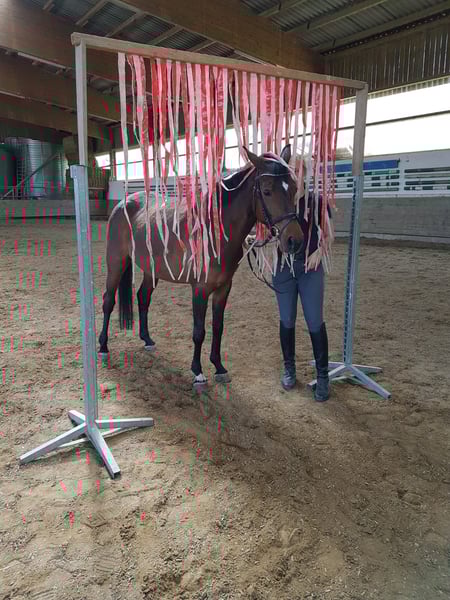 Coco es una poni alemana de 11 años, de tamaño final, que conquista por su encanto y su versátil carácter. Es una auténtica polivalente: ya sea para doma, salto o paseo por campo, Coco participa con alegría y ganas de aprender. En su manejo, se muestra tranquila, amistosa, disfruta de la atención y siempre es un placer trabajar con ella a diario. Bajo la silla, está motivada, responde suavemente a las ayudas y tiene buen rendimiento, aunque requiere un jinete experimentado, ya que aporta mucha energía y carácter. Coco nunca ha tenido lesiones mayores, está sana, vacunada y desparasitada. En la articulación de la rodilla trasera izquierda tiene una pequeña "piphake", pero según el veterinario, es completamente inofensiva. Ahora busca un nuevo hogar lleno de cariño, con alguien que valore su energía y potencial. Una excelente poni para jinetes ambiciosos que desean una compañera fiable para la formación, el ocio y el paseo en campo.