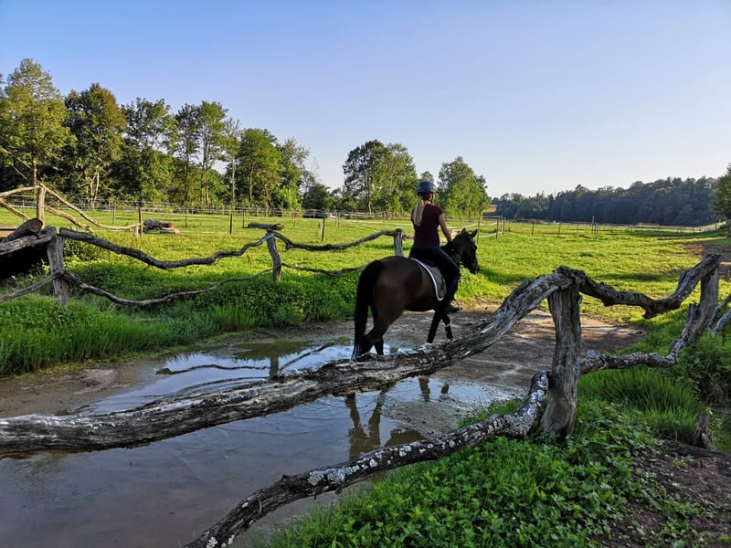Coco is an 11-year-old German Riding Pony with an ideal size, charming personality, and versatile talent. She is a true all-rounder – whether in dressage, jumping, or trail riding, Coco approaches everything with enthusiasm and a willingness to learn. In handling, she is well-behaved, friendly, enjoys attention, and makes daily grooming and groundwork enjoyable. Under saddle, she is motivated, responsive to aids, and eager to perform, but requires an experienced rider, as she has a lot of energy and spirit. Coco has never sustained any major injuries, is healthy, vaccinated, and dewormed. She has a small “Piphake” on her left hind knee joint, but according to the veterinarian, it poses no health concerns. She is now looking for a new, loving home with someone who appreciates her energy and potential. A fantastic pony for ambitious riders seeking a reliable partner for training, leisure, and trail riding!