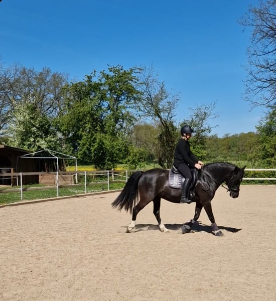 Bildschöne Rappstute zu verkaufen. STM 144cm, 13 Jahre alt. Deckt gut ab, ideal für kleinere Erwachsene. Mit Kindern ist sie freundlich und brav. Ihre Sensibilität erfordert einen einfühlsamen Reiter, der mit ihr geduldig und verständnisvoll umgeht. Tonja ist eine Mischung aus Genie und Wahnsinn. Tonja ist freizeitmäßig hauptsächlich im Gelände geritten und vollkommen gesund. Im Gelände macht sie ihren besten Job und ist ein absolutes Verlasspony, ob alleine oder in der Gruppe. Ob Straßenverkehr oder sonstige Gruselei, geht sie stets locker und mutig voran. Insgesamt ist Tonja ein tolles Pony, das durch ihre charmante Art und ihre Intelligenz begeistert. Wer bereit ist, Zeit und Geduld in die Zusammenarbeit mit ihr zu investieren, wird mit einer treuen und einzigartigen Begleiterin belohnt. Sie wird daher nicht als Kinder- oder Anfängerpony bezeichnet. Natürlich ist Tonja verlade- und schmiedefromm. Regelmäßig entwurmt und geimpft, jährliche Zahnkontrolle und osteopathische Behandlung. Barhufer. Platz vor Preis! Zubehör kann ggf. gegen Aufpreis mit erworben werden.