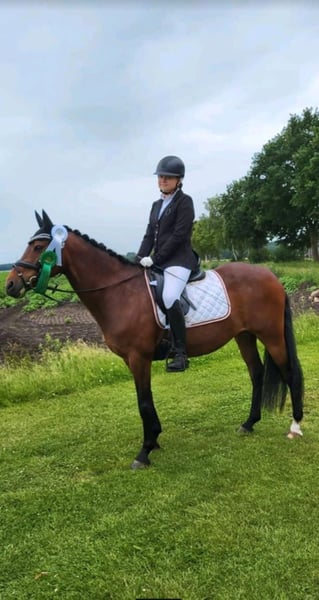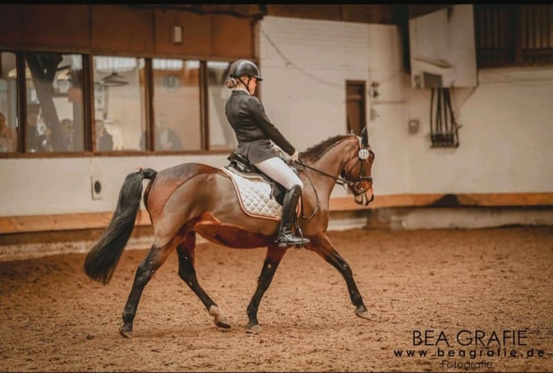 Wegen Umstieg auf Großpferd suchen wir ein neues Zuhause für unsere Stute Nika. Sie ist 13 Jahre alt, mit 1,47 m eingemessen und verfügt über tolle GGA. Unsere Tochter hat sie in RW, DRW und in E und A-Dressur erfolgreich vorgestellt. Egal ob Hängerfahren,Schmied, Hunde oder Traktoren: für Nika kein Problem! Ins Gelände geht sie sehr gerne (auch alleine) und auch Springen/Stangenarbeit bereiten ihr viel Freude. Ebenso hat sie viel Spaß an Bodenarbeit und Gelassenheits-Training oder auch einfach nur am "rumtüdeln" - Nika geht mit Ihrem Menschen durch dick und dünn!!! Sie lebt bei uns im Offenstall, kennt aber auch die Box. Anfang 2022 ist sie bei uns eingezogen und war immer gesund. Nika möchte immer alles richtig machen, deshalb können wir uns gut eine(n) Anfänger(in) für sie vorstellen. Wir verkaufen nicht an Händler oder Schulbetriebe!!! Platz vor Preis!!! Bei Interesse können Viedeos verschickt werden.
