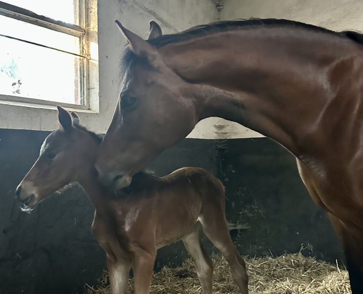 Sehr schweren Herzens biete ich meine tragende Staatsprämienstute zum Verkauf an. Zweimal tragend von Der Zauberlehrling geschallt, derzeit ein sehr schönes, gesundes Stutfohlen bei Fuß- kann im Oktober abgesetzt werden. Baghira wurde selbst erfolgreich bis zur Dressurklasse L ausgebildet und vorgestellt- und ist gesund (!) in die Zucht gewechselt. Sie ist eine sehr anständige, souveräne und gute Mutter. In jeder Lebenslage unkompliziert, besamen, verladen, Zuchtschauen, bei Geburten etc. Ihr Halbbruder ist bis Inter. I hocherfolgreich unterwegs, ihre eigenen Kinder sind alle sehr typvoll und bewegungsstark - die ersten starten demnächst im Sport. Alles weitere sehr gerne auf persönliche Nachfrage.