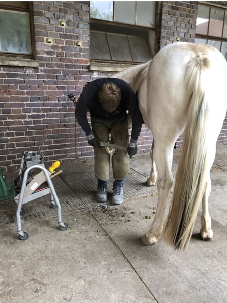 Waarom verkoop ik dit geweldige paard? Ik heb niet genoeg gelegenheid voor ritten met z’n tweeën of in een groep – ik ga niet alleen rijden. En voor rijden in de bak ontbreekt het me aan de juiste motivatie/energie. Daarom ben ik op zoek naar de juiste match voor mijn lieve Endmaß-pony-merrie (2012, 148 cm). Mijn pony is het type dat graag buiten avonturen beleeft, maar je kunt ook veel plezier met haar hebben in de bak of op de piste, mits je de juiste energie meebrengt. Omdat ze in de bak of op de piste erg ontspannen en eerder rustig is, kan ik me haar ook goed voorstellen als therapiepaard. Mijn pony is zeer geduldig, let goed op de ruiter, stopt als het te wackelig wordt en blijft kalm. In het terrein en het verkeer is ze onbevreesd, heeft geen problemen met trekkers, honden of soortgelijke situaties. Ze loopt heel braaf in een groep (solo heb ik het nog niet geprobeerd) en overbrugt hindernissen vlot (onder andere Extreme Trail). Ook in de omgang is ze zeer braaf, makkelijk in de hoefverzorging en bij het laden. Ze houdt van grondwerk zoals doppellonge, equikinetiek of wippen. Sinds 2021 woont ze in een open stal met gemengde kudde en voelt zich daar heel goed; ze is onderaan de rangorde. Het is voor mij belangrijk dat ze ook in de toekomst in een goede open stal of vergelijkbare omgeving met zo veel mogelijk dagbesteding en bewegingsvrijheid kan blijven. Ze is lichtfuttrig. Dit is geen noodverkoop. Aanvragen van handelaren of geïnteresseerden zonder bewijs van open stal-houding of vergelijkbaar zijn zinloos. Mijn pony is fit, gezond, vrij van allergieën en geen ezel. Meer informatie over haar afstamming en dergelijke op aanvraag. Duitse Reitpony, L.St. S1 (DR) Gepromoot als veulenkampioen Geboortejaar 2012 Stockmaat 148 cm Voor- en achterkappen met klebebeschlag Prijs: €6.999,- Inclusief bit, leren halster, knoophalster en 3 dekens (100, 50, 0). Het dressuurzadel kan bijgekocht worden voor €500,-. Alternatief heb ik een Barefoot Cherokee-zadel met pad voor €400,-. Om te voorkomen dat er proefritten worden gemaakt zonder koop, alleen mogelijk tegen een vergoeding van €35,- (bij aankoop verrekend).