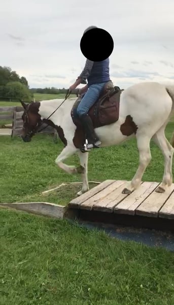 Warum verkaufe ich dieses tolle Pferd? Ich habe zu wenig Gelegenheiten für Ausritte zu zweit oder mehreren - alleine gehe ich nicht ausreiten. Und fürs Reiten in der Halle fehlt mir die nötige Motivation/Energie. Daher suche ich für meine liebe Endmaß-Ponystute (2012, 148 cm) das passende Match. Mein Pony ist der Draußen-Abenteuer-Typ, aber man kann auch in der Halle oder auf dem Platz viel Spaß mit ihr haben, vorausgesetzt man bringt die nötige Energie mit. Da sie in der Halle/auf dem Platz sehr entspannt und eher gemütlich unterwegs ist, kann ich sie mir auch gut als Therapiepferd vorstellen. Mein Pony ist sehr geduldig und passt gut auf den Reiter auf, bleibt stehen, wenn es obendrauf zu wackelig wird. Im Gelände und Straßenverkehr ist sie unerschrocken, hat keine Probleme mit Treckern, Hunden o. ä.. Sie läuft in der Gruppe total brav (allein habe ich es noch nicht versucht) und meistert Hindernisse souverän (u. a. Extreme Trail). Auch im Umgang ist sie sehr brav, unkompliziert bei der Hufbearbeitung und beim Verladen. Sie mag Bodenarbeit wie Doppellonge und Equikinetik oder wippen. Sie lebt seit 2021 im Offenstall in gemischter Herde und fühlt sich dort sehr wohl, sie ist rangniedrig. Es ist mir wichtig, dass sie auch künftig in einem guten Offenstall o. ä. mit möglichst ganztägig Auslauf und Bewegungsmöglichkeit lebt. Sie ist leichtfuttrig. Das ist kein Notverkauf. Anfragen von Händlern oder Interessenten ohne Nachweis einer Offenstallhaltung o. ä. sind zwecklos. Mein Pony ist fit, gesund, frei von Allergien, kein Ekzemer. Weitere Infos über Abstammung etc. auf Nachfrage. Dt. Reitpony, L.St. S1 (DR) Als Saugfohlen prämiert Geburtsjahr 2012 Stockmaß 148 cm Klebebeschlag vorne und hinten Preis: 6.999,- € Inkl. Trense, Lederhalfter, Knotenhalfter und 3 Decken (100, 50, 0). Der Dressur-Sattel kann für 500,- € dazu gekauft werden. Alternativ habe ich für sie einen Barefoot Cherokee-Sattel mit Pad für 400,- € zusätzlich. Um Reittourismus vorzubeugen Probereiten nur gegen 35 € Gebühr (Verrechnung bei Kauf)