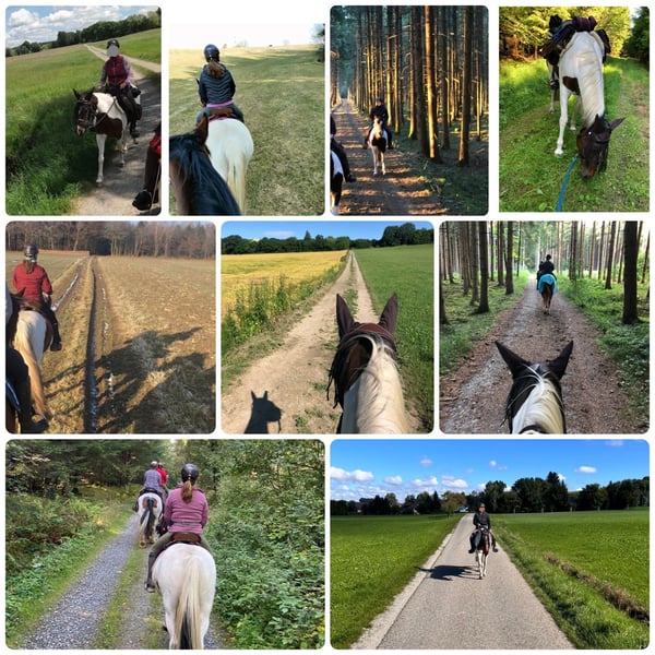 Why am I selling this wonderful horse? 1. I don’t enjoy riding out alone – unfortunately, opportunities for group rides are just too rare for me. 2. Since my pony has a very relaxed temperament and I am also a calm rider with a rather light seat, it doesn’t work well with us in the riding arena (video available – trainer present). Therefore, I am looking for the perfect match for my beloved Endmaß pony mare (born 2012, 14.8 hh). I am sure a rider who is confident to ride alone and exudes good, active energy will have a lot of fun with her. In the field and traffic, she is fearless and not afraid of large machines, trucks, trailers, or dogs. She is a bit “curious” around cows but can pass them without needing to dismount. In a group, she likes to stay at the back but also confidently leads if the other horse stops. She handled an extreme trail course with ease, jumping all obstacles along the way. She is very well-behaved in handling, no bucking, rearing, kicking, or biting. She is an exemplary student during hoof care and enjoys being groomed without fidgeting. She loads into the trailer without issues. She watches over the rider and will stop if the rider becomes unbalanced. She enjoys lunging and equikinetics, and can also wibble-wobble. The mare has been with me since March 2021 and lives in a spacious open stable with limited turnout. She feels very comfortable in the mixed herd, is somewhat lower in rank, and avoids conflicts. It is important to me that she continues to live in a good open stable or similar environment with as much turnout and movement as possible. She is easy to feed. This is not an emergency sale. Inquiries from dealers or interested parties without proof of turnout or similar arrangements are pointless. Of course, I continue to train her with groundwork and she is ridden once a week by my trainer. My pony is fit, healthy, allergy-free, and not an Eczema horse. Further information about her pedigree etc. available upon request. German Riding Pony, L.St. S1 (DR) Premium foal at birth Born in 2012 Height: 14.8 hh Klebe shoes front and back Price: €6,999 Including bridle, leather halter, rope halter, and three blankets (100, 50, 0). The saddle can be purchased for €500. To prevent riding tourism, trial riding is only possible for €35 (deductible from the purchase price).