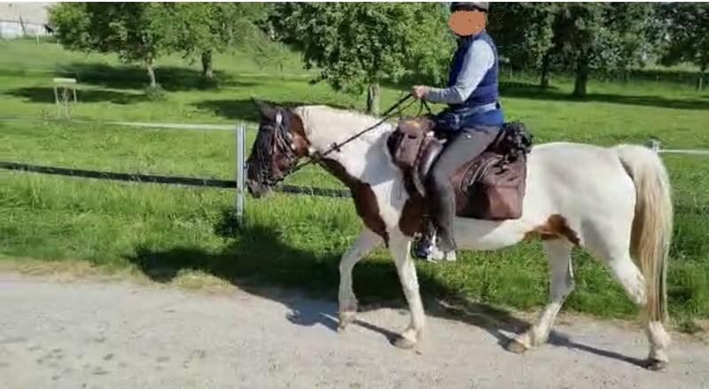 Pourquoi vends-je cette magnifique jument ? Je dispose de peu d’occasions pour faire des balades à deux ou en groupe – je ne pars pas seule en balade. Et pour monter en manège, je manque de motivation et d’énergie. C’est pourquoi je cherche le partenaire idéal pour ma douce ponette de taille moyenne (née en 2012, 148 cm). Mon poney est plutôt du genre aventurière en extérieur, mais on peut aussi s’amuser beaucoup en manège ou sur la carrière, à condition d’avoir suffisamment d’énergie. Comme elle est très détendue et plutôt tranquille en manège ou sur la carrière, je peux aussi l’imaginer comme cheval de thérapie. Mon poney est très patient, veille bien sur le cavalier, et s’arrête si l’on devient trop instable dessus. En terrain et dans la circulation, elle est intrépide, n’a aucun problème avec les camions, chiens ou autres. Elle se comporte très bien en groupe (je ne l’ai pas encore essayée seule) et franchit les obstacles avec assurance (notamment en Extreme Trail). Elle est aussi très calme en manipulation, facile lors du ferrage et du déchargement. Elle aime le travail à pied, comme la longe double, l’équi-kinetik ou le balancier. Depuis 2021, elle vit au paddock en troupeau mixte, où elle se sent très bien ; c’est une jument de rang inférieur. Il est important pour moi qu’elle continue à vivre dans un bon paddock ou équivalent, avec un accès à l’extérieur toute la journée et suffisamment d’espace pour bouger. Elle est peu gourmande. Ce n’est pas une vente d’urgence. Les demandes de marchands ou d’intéressés sans preuve d’élevage en paddock ou équivalent seront ignorées. Ma ponette est en pleine forme, saine, sans allergies, et n’est pas atteinte d’eczéma. Plus d’informations sur sa lignée, etc., sur demande. Reproducteur de race allemande, L.St. S1 (DR) Prémium en poulain à la naissance Année de naissance : 2012 Taille : 148 cm Ferrures adhésives à l’avant et à l’arrière Prix : 6 999 € Inclut bridon, licol en cuir, licol à nœuds et 3 couvertures (100, 50, 0). La selle de dressage peut être achetée séparément pour 500 €. Alternativement, je propose un saddle barefoot Cherokee avec tapis pour 400 €. Pour éviter tout abus lors des essais, la séance d’essai est facturée 35 € (remboursée en cas d’achat).