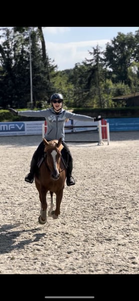 ✨ Ponymerrie met talent en instelling ✨ Onze uitzonderlijke ponymerrie zoekt een nieuw, liefdevol thuis waar ze verder gestimuleerd wordt en een talentvolle jonge ruiter de deuren kan openen in de wedstrijdsport. Fiurie maakt bijna 9 jaar deel uit van onze familie en kwam pas op haar zevende bij ons in de sport. We hebben altijd veel waarde gehecht aan een zachte, eerlijke en realistische opleiding, uitsluitend door onze twee dochters, maar altijd ondersteund door onze professionele trainers. ⭐ Successen & opleiding Fiurie is een echte allrounder: • Springen: succesvol tot klasse L, meerdere keer geplaatst en zelfs op het podium bij de Saksische kampioenschappen. • Vielseitigkeit (eventing): lid van het Saksische team tijdens het Bundesnachwuchschampionat in Warendorf en gekwalificeerd voor het Duitse kampioenschap. • Dressuur: succesvol tot FEI-niveau voorgesteld, eveneens tijdens de Saksische kampioenschappen. Ze is inmiddels 15 jaar oud, maar nog steeds een krachtpatser die alles geeft in het parcours. Ze heeft het juiste temperament voor springen en eventing, blijft altijd goed handelbaar en betrouwbaar. ⭐ Voor wie is ze geschikt? Fiurie is geen pony voor absolute beginners. Ze zoekt een jonge ruiter die veilig is in springen en dressuur op A-niveau. De ruiter moet fijn kunnen rijden, gevoel hebben, haar eerlijk behandelen en enthousiast zijn om samen verder de wedstrijdsport te ontdekken. De samenwerking tussen ruiter en pony is ons enorm belangrijk – wij zoeken de juiste persoon, niet de snelle verkoop. ⭐ Karakter & dagelijks leven Naast al haar successen is Fiurie een echt plezierpony geworden: • Regeerbaar zonder zadel en zelfs alleen met halstertouw • Absoluut betrouwbaar in omgang: bijt niet, trapt niet, steigert niet, bokt niet • Zeer makkelijk bij het laden, de smid, de dierenarts • Ervaren in wedstrijden, ontspannen op elk terrein • Regelmatig gevaccineerd, ontwormd en in topconditie ⭐ Onze wens We wensen Fiurie een vijfsterrenhuis waar ze geliefd, gestimuleerd en gewaardeerd wordt – en waar een jonge ruiter op haar kan groeien. Plaats gaat voor prijs, dat is voor ons vanzelfsprekend. Als we uw interesse hebben gewekt en u Fiurie persoonlijk wilt ontmoeten, horen wij graag van u via WhatsApp of een telefoontje op 017672664951. Om reittourisme te voorkomen en Fiuries welzijn te waarborgen, rekenen wij voor een proefrit een vergoeding van 50 €, die bij aankoop uiteraard verrekend wordt.