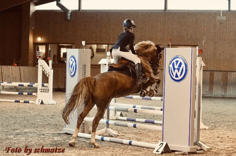 ✨Ponystute mit Vermögen und Einstellung ✨ Unsere außergewöhnliche Ponystute sucht einen neuen, liebevollen Platz, an dem sie weiterhin gefördert wird und einem talentierten Nachwuchsreiter so einige Türen im Turniersport öffnen kann. Fiurie ist seit fast 9 Jahren ein Teil unserer Familie und kam erst mit sieben Jahren bei uns in den Sport. Wir haben immer viel Wert darauf gelegt, sie schonend, fair und reel auszubilden, ausschließlich von unseren zwei Töchtern, jedoch immer durch professionelle Unterstützung unserer Trainer. ⭐ Erfolge & Ausbildung Fiurie ist ein echtes Allround-Talent: •Springen: Bis Klasse L siegreich unterwegs, mehrfach platziert und sogar bis aufs Treppchen bei den Sächsischen Meisterschaften. •Vielseitigkeit: Mitglied des Sächsischen Teams beim Bundesnachwuchschampionat in Warendorf und Qualifiziert zur Deutschen Meisterschaft •Dressur: Erfolgreich bis FEI vorgestellt, dies ebenfalls im Rahmen der sächsischen Meisterschaften Sie ist mittlerweile 15 Jahre alt, aber noch immer eine richtige Maschine, die im Parcours alles gibt. Sie hat das nötige Go fürs Springen und die Vielseitigkeit, bleibt aber immer händelbar und zuverlässig. ⭐ Für wen eignet sie sich? Fiurie ist kein absolutes Anfängerpony. Sie wünscht sich einen jungen Reiter, der im Springen und in der Dressur sicher auf A-Niveau unterwegs ist. Der Reiter sollte fein reiten, Gefühl mitbringt und sie fair behandeln und Lust hat, mit ihr weiter den Turniersport zu entdecken. Das Zusammenspiel zwischen Reiter und Pony ist uns extrem wichtig – wir suchen den passenden Menschen, nicht den schnellen Verkauf. ⭐ Charakter & Alltag Neben all ihren Erfolgen ist Fiurie ein echtes Spaßpony geworden: •ohne Sattel und sogar nur mit Halsring reitbar •absolut verlässlich im Umgang: beißt nicht, tritt nicht, steigt nicht, bockt nicht •super unkompliziert beim Verladen, Schmied, Tierarzt •turniererfahren, entspannt auf jedem Platz •regelmäßig geimpft, entwurmt und top gepflegt ⭐ Unser Wunsch Wir wünschen uns für Fiurie ein Fünf-Sterne-Zuhause, in dem sie geliebt, gefördert und wertgeschätzt wird – und in dem ein Nachwuchsreiter auf ihr wachsen kann. Platz vor Preis ist für uns selbstverständlich. Wenn wir Ihr Interesse geweckt haben und Sie Fiurie persönlich kennenlernen möchten, freuen wir uns sehr über eine WhatsApp-Nachricht oder einen Anruf unter 017672664951 Um Reittourismus vorzubeugen und Fiuries Wohl zu schützen, erheben wir für ein Probereiten eine Gebühr von 50 €, die bei Kauf selbstverständlich verrechnet wird.