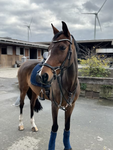 Wir suchen für unsere 16 Jahre alte Pony Stute ( Manjana) eine neue Familie. Sie ist super brav im Umgang, lässt von Bodenarbeit bis springen ohne Sattel alles mit sich machen und bleibt in jeder Situation händelbar und lieb. Wir könnten sie uns super als Familienpony für Kinder vorstellen , da sie kein Problem damit hat wenn sich auch mal nur wenig bewegt oder gearbeitet wird. Sie kennt Geländesprünge , geht artig durchs Wasser und lässt auch sonst alles mit sich machen. Sie ist im Springen bis A gelaufen und auch platziert, konnte aber auch schon in ein paar E Dressuren eine Schleife mitnehmen. Dort ist sie auf einem sicheren A Niveau kann aber auch einzelne Lektionen aus den höheren Klassen sicher. Sie war vor einem Jahr für 6 Wochen verletzt , und wurde danach wieder schonend aufgebaut und läuft seitdem ohne Probleme. ( Ultraschallbilder obB. vom 31.12.25 liegen vor) Sie wird nur in liebevolle Hände abgegeben und nicht an Schulbetriebe oder ähnliches.