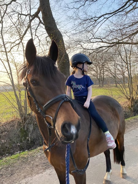 With a heavy heart, we must part with our pony Grace Ultima due to transitioning to a larger horse. My daughter has competed successfully with her from beginner rider competitions up to L dressage. Last season, she was placed in every A* and A** class, winning some. She is also successful up to L* level. Grace Ultima is an absolute children's pony, but also suitable for smaller adults as she has a good size. Ideal for a mother-child combination. She is incredibly well-behaved, has never spooked or bucked, and is very sweet both at competitions and in the field. She is not spooky and always tries her best. In official competition reports, she was often described as very obedient and well-mannered. My daughter regularly rides her alone in the field. She has no bad habits—she doesn’t rear or buck. She is, of course, shod and loading friendly. She is regularly vaccinated and dewormed. She has only known the vet from vaccinations—she has always been healthy. We are only offering this pony to the very best hands, as she is a part of our family. Priority goes to the person who offers the best home!