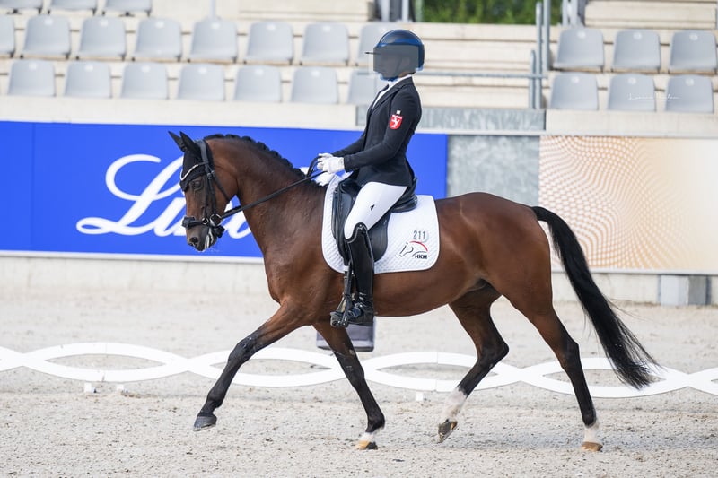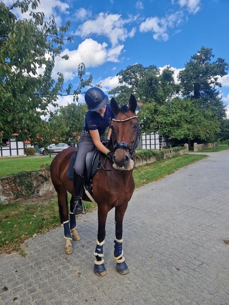 Unfortunately, ponies do not grow with us... With a heavy heart, we are selling our championship-experienced pony. Greta has participated multiple times in Bavarian, Westphalian, and German Championships and currently holds top placings in Pony FEI (L**) with over 70%. She is always well-behaved and reliable, highly motivated, and very eager to learn. Greta is also very interesting from a breeding perspective. She is a State Premium mare and, after competing in the Bundeschampionate (Vice Bundeschampioness), she has already foaled a foal. We wish for her to find a loving home where she will be loved and appreciated just as much as she has been with us. If you are genuinely interested, we look forward to hearing from you via message or phone call. Videos can be sent easily via WhatsApp.