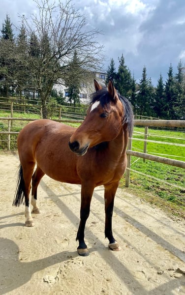 Leona, bei uns Lisi getauft, ist 16 Jahre alt und lief die letzten fünf Jahre in der Reittherapie. Dort wurde sie vielseitig eingesetzt: *an der Longe mit Kindern, *am Langzügel, gefahren vom Boden (das konnten schon die Jüngsten selbst mit ihr tun)- da sie bei ihrer ersten Besitzerin vor der Kutsche lief, macht sie diese Aufgabe immer noch sehr gerne. *freies Reiten im Schritt, dort ist sie so fein, sie kann z.B. über Ausatmen gehalten werden. *Sie könnte jede Aufgabe im Gelassenheitstraining meistern! Lisi ist im Umgang ganz wunderbar- davon erzähle ich persönlich gern mehr! Nun wünsche ich mir einen Menschen bei dem sie die Nummer 1 sein darf und sie noch mehr Liebe zurück bekommt. Jemanden, der mit ihr zusammen wachsen möchte und gerne Zeit mit ihr verbringt! Damit sie nun als Freizeitpferd noch viele schöne Abenteuer, sowie ruhige Momente erleben kann! Sie ist 1,52m groß und kann gerne mit den passenden Equipment übernommen werden! Kennenlernen jederzeit möglich! Über den Preis lässt sich sprechen, wenn der Platz schön ist! Wir freuen uns auf dich!