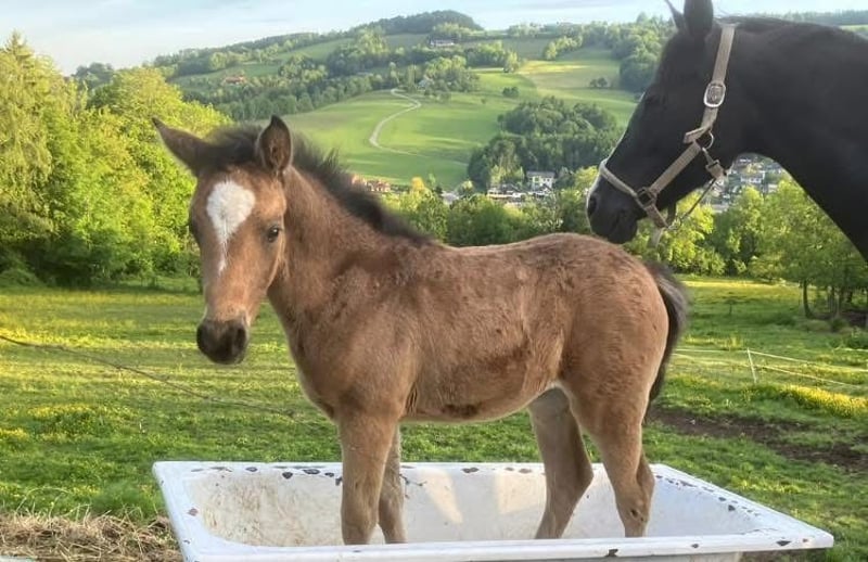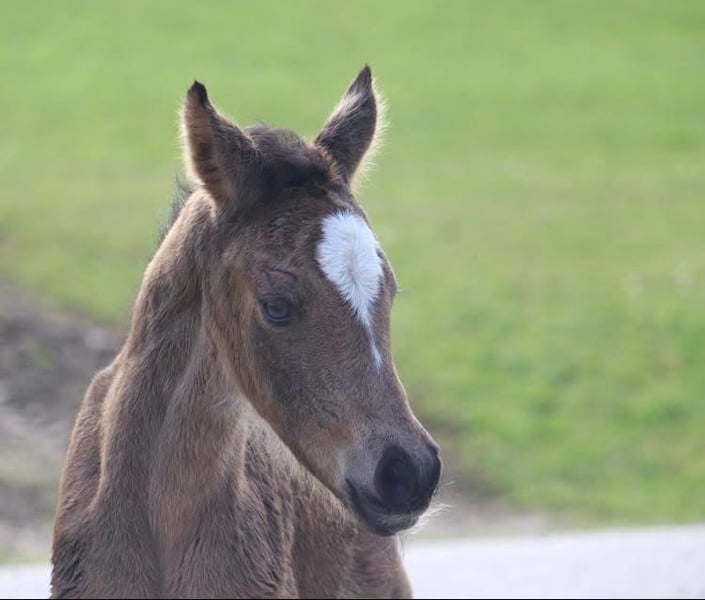 For sale is a very expressive riding pony mare. She will turn one year old in April. Her estimated final height will be around 148 cm. Her sire is the licensed riding pony stallion Rappenbergs Little Lord. Her dam is the registered mare Nania SD, sired by Neverland. Both parents are ideally suited as family horses. Due to her expressive gaits, I can already say that "Nice Girl" could also become an interesting sport partner. Nicy has a very striking buckskin coat. Of course, she is already accustomed to the farrier and loading onto the trailer. She is regularly vaccinated and dewormed.