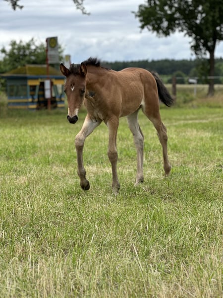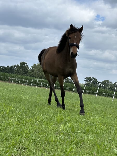 Zum Verkauf steht aus privater Hobby Zucht unsere wunderschöne Ponystute. Geboren im Juni 2024, sie beherrscht bereits das komplette Fohlen ABC ( Halferführig , Schmied, putzen,Hänger usw.) .Durch ihre Qualität korrektes Gebäude und ihre super Grundgangarten überzeugte sie bei der Fohlenschau und hat die Fohlenprämie erhalten. Im Umgang ist sie sehr brav und menschenbezogen . Malu bringt die besten Voraussetzungen für Zucht und Sport mit. Top Abstammung. Auch als Familienpony könnte ich sie mir sehr gut vorstellen! Bei Kindern ist sie auch sehr vorsichtig! Nur in Beste Hände abzugeben. wir freuen uns auf ein Kennenlernen. Bei Fragen und Terminabsprache Tel. 015203859439