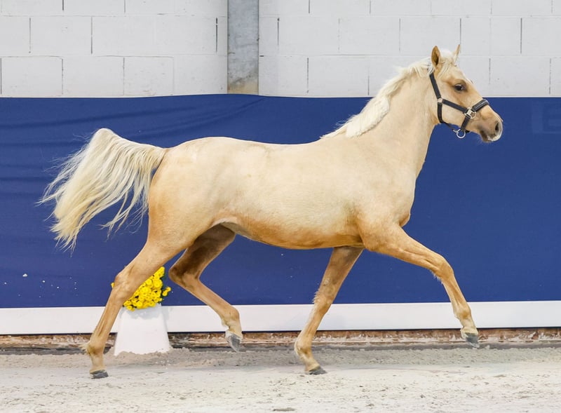 In our collection, we have strictly selected youngsters for all purposes: riding, breeding, and children's ponies. Here you can access the complete collection: https://ponyforum.auction With the elegant palomino mare Diese Eine, another descendant of the champion stallion Damenstolz A is available. Her dam, StPr Kalani R, completed her mare performance test with an excellent final score of 8.33; she is a daughter of the vice national champion Casino Gold.
