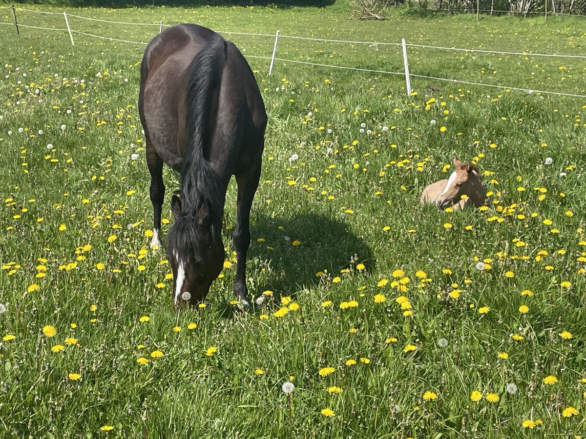 Ich möchte mich nun mehr auf das reiten konzentrieren und mit der Zucht aufhören. Somit darf meine Stute in ein neues zu Hause ziehen. Sie wurde nie geritten und das soll sie auch nicht. Derzeit weniger in der Hand. Lässt sich trotzdem immer brav von meiner Tochter (10) führen. Ich bin die 2. Hand. Ich habe super schöne, entspannte und zutrauliche Nachkommen aus ihr. Davon wäre der Hengst von diesem Jahr auch zu verkaufen (von Cockney Cracker). Ich habe auch 3 weitere Nachkommen die man besichtigen könnte. Sie ist nicht tragen für 2026! Die ersten Fohlen per Natursprung die letzten nun per Frischsamen. Unproblematisch beim besamen. (Geht auch im Anhänger) das abfohlen mag sie am liebsten alleine, das war immer unkompliziert und sie ist eine sehr tolle Mama.