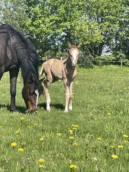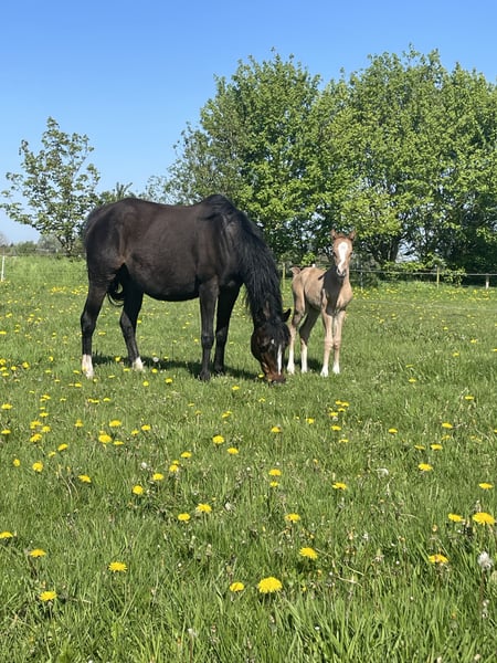I would like to focus more on riding now and stop breeding. Therefore, my mare is looking for a new home. She has never been ridden and she should not be. Currently, she is less handled. However, she is always well-behaved when being led by my daughter (10 years old). I am the second owner. I have super beautiful, relaxed, and trusting offspring from her. The stallion from this year (by Cockney Cracker) is also for sale. I also have 3 additional offspring that can be viewed. She is not in foal for 2026! The first foals were conceived by natural cover, the last ones by fresh semen. She is uncomplicated when being bred (also works in the trailer). She prefers to foal alone, which has always been straightforward, and she is a very great mother.
