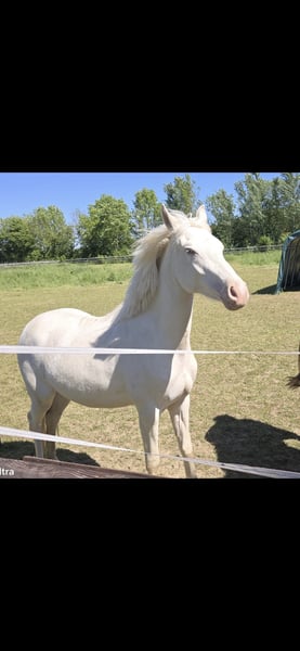 Queen a 2,5 ans et mesure 145 cm au garrot. Nous l'avons achetée délibérément comme poulain, et depuis, elle est chez nous en élevage. Elle a un caractère en or, est super facile et très sociale avec ses congénères. Comme nous avons acquis des juments plus âgées pour notre élevage, nous recherchons pour cette jument spéciale un foyer aimant. Queen est non seulement très cool et magnifique, mais elle possède également 3 bonnes allures et un pedigree très montable. Son père, Dating AT NRW, a eu du succès jusqu'à la classe supérieure, et sa mère, FS Champion Deluxe, est l'un des meilleurs étalons. Un diamant brut à éduquer soi-même. Il est très probable qu'après une formation appropriée, elle devienne un poney fiable pour les enfants. Elle a été primée avec la médaille d'or en tant que poulain. Elle a grandi dans un petit groupe de congénères du même âge. La meilleure alimentation et beaucoup de mouvement sont pour nous une évidence, ainsi que les vermifuges et les rendez-vous réguliers chez le maréchal-ferrant. La vaccination contre le tétanos est également complète. Une jument très correcte dans une couleur spéciale qui ne laisse rien à désirer. Pour le pedigree, voir l'image. Pour un intérêt sérieux, n'hésitez pas à nous contacter.