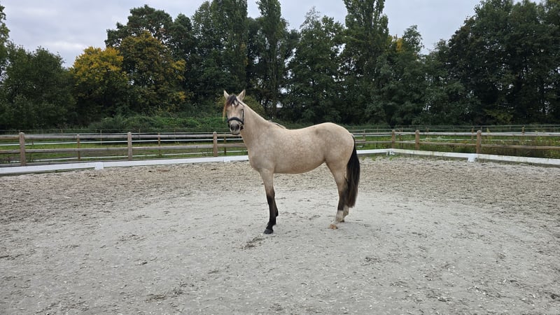Unsere Clara ist eine sehr liebe und ausgeglichene Stute. Sie ist sehr umgänglich und liebt es gekuschelt zu werden. Sie ist seitdem Absetzen bei uns, hat eine liebevolle Aufzucht mit bestem Futter und immer ausreichend Platz zur Bewegung gehabt, Winter sowie Sommer. Wurmkuren und Schmied wurden selbstverständlich regelmäßig durchgeführt. Ich wünsche mir für Clara liebevolle Menschen, die Sie sportlich ausbilden und fördern. Sie hat gute GGA, schön lang im Rücken, sehr korrekt, stabiles Fundament, top Hufe und dazu noch wunderschön. 😊 Das Pedigree spricht für Vererbung und Rittigkeit. (siehe Dokument) Mit so einem liebevoll, abgeklärten Charakter kann sie nur nach entsprechender Ausbildung auch ein verlässliches Kinderpony werden. Bei ernsthaftem Interesse gerne melden und wir vereinbaren einen Termin zum Kennenlernen. Wir verkaufen keine Tiere an Händler oder an Schulbetriebe.