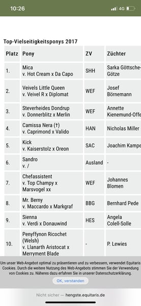 Zum Verkauf steht eine bezaubernde, charakterstarke und talentierte Stute. Manila ist vielseitig einsetzbar. Durch ihren ruhigen und menschenbezogenen Charakter kann sie genauso wie ihre Schwester Höchstleistungen im Turniersport bringen oder eine treueFreizeitpartnerin werden. Mit ihrem charmanten Wesen und ihrem freundlichen Charakter ist sie sowohl für erfahrene Reiter als auch für Einsteiger geeignet, die ein zuverlässiges und lernwilliges Pony suchen. Sie ist gut sozialisiert, kennt den Umgang mit anderen Pferden und hat bereits viel Erfahrungen in Anhänger fahren. Wenn Sie auf der Suche nach einem vielversprechenden Partner für den Sport oder für schöne Ausritte sind, dann ist diese Stute genau das Richtige für Sie! Bei Interesse oder weiteren Fragen freue ich mich auf Ihre Nachricht!