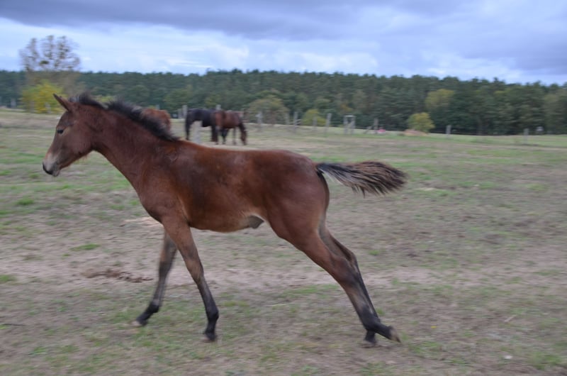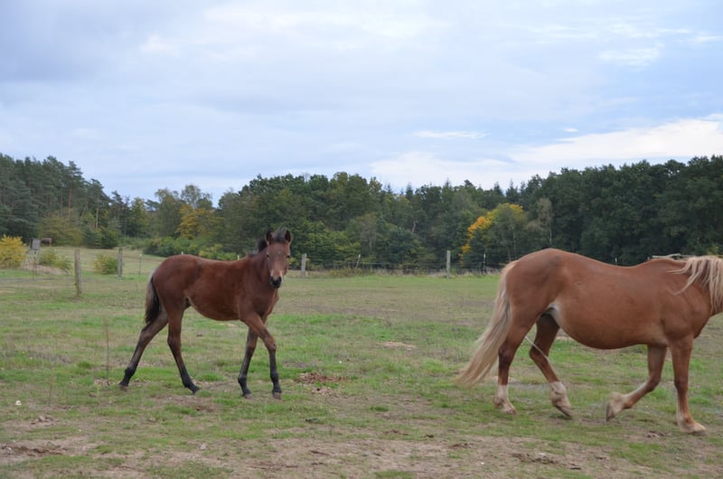 Kostal "Scarlett" was born on April 29, 2024, on our farm. She is sired by the riding pony stallion "D-Power AT" and our mare Kostal "Foxy." Breed: Riding Pony Gender: Mare Age: 1 year Color: Bay Usage: Leisure Breeding Dressage Directly from the breeder Description: Scarlett is from our own breeding and is growing up in a species-appropriate environment with other foals and yearlings. She is a lively, curious foal and is already familiar with trailer loading and has been introduced to the farrier. She is growing up in our herd, in an open stable with an adjacent paddock. Additionally, she has good contact with people and is halter-trained. Negotiable price: 4000.00 Euros We also have other ponies of various ages for sale.