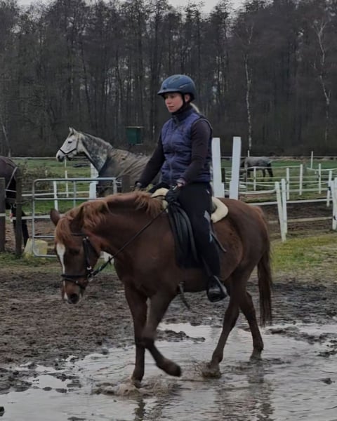 Unsere bildhübsche Reitponystute "Disney " begeistert nicht nur mit ihren guten Grundgangarten, sondern vor allem mit ihrem wunderbaren Charakter. Sie hat sprichwörtlich das Herz am rechten Fleck und zeigt jeden Tag, wie gern sie mit dem Menschen zusammenarbeitet. Beim Anreiten war sie von Anfang an äußerst solide und will alles immer richtig machen. Sie bringt eine natürliche Lernfreude mit und ist immer wissbegierig – egal ob beim Longieren, Langer Zügel oder neue Aufgaben unter dem Reiter, alles geht. Unarten hat sie dabei nie gezeigt; im Gegenteil: Man hat das Gefühl, sie weiß ganz genau, dass sie ein echtes Reitpony ist und erfüllt diese Rolle mit Stolz und Freude. Eine wirklich liebenswerte junge Stute, die ihren Menschen glücklich machen möchte und noch viel Potenzial für die Zukunft mitbringt. Ideal für jemanden, der sich ein unkompliziertes, motiviertes und talentiertes Pony an seiner Seite wünscht. Videos können auf Wunsch verschickt werden.