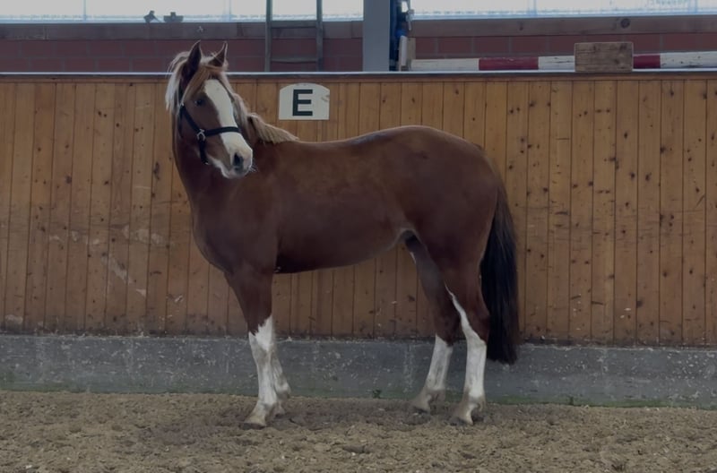 Big Stars Happiness“ ist eine 3jährige auffällig gezeichnete Nachwuchsstute für den Sport. Sie hat ein aktuelles Stockmaß von 1.43m und wird im Maß bleiben. Charakterlich eine sehr brave Stute mit go. Sie ist bisher am Halfter longiert und kennt das Freispringen. „Happy“ hat drei sehr gute GGA und macht einen vermögenden schönen Sprung. Ihre Mutter „St.Pr.St. Cascana“ war selbst Spring Siegerstute in Westfalen & macht sehr rittige und vielversprechende Sportponys. „Happy“s Halbschwester ist ebenfalls Spring Siegerin der Stutenschau in Westfalen. Ein Halbbruder und Vollbruder sind aktuell unter dem Sattel und starten in der kommenden Saison die ersten Springpferde Prüfungen. Der Vater „Big Star TF“ ist aktuell im Springen der Klasse M erfolgreich unterwegs. Happy eignet sich besonders als Nachwuchsstute für den Springsport, hat aber aufgrund ihrer guten GGA auch Perspektive in der Dressur.