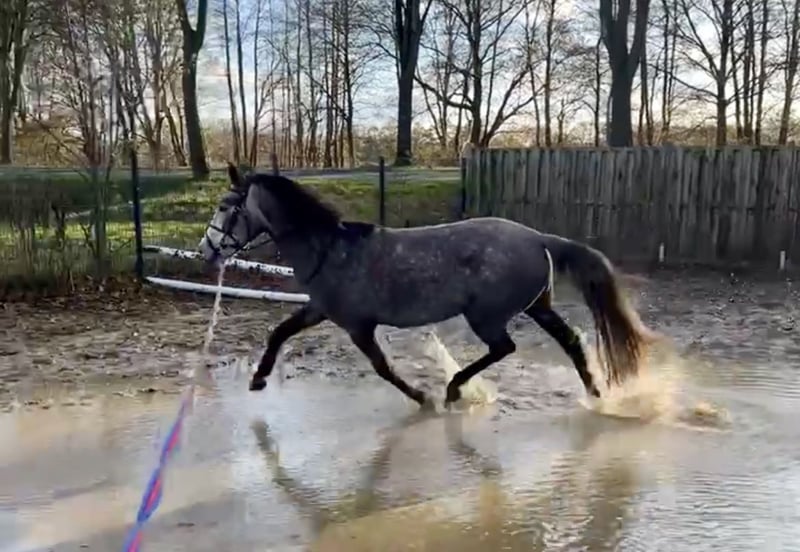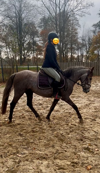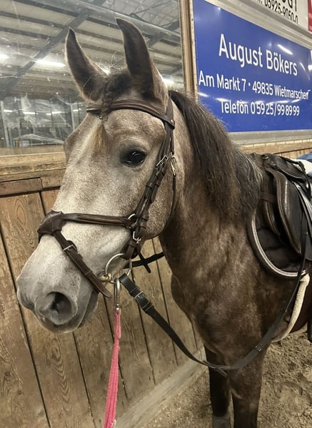 Zum Verkauf steht meine 4-jährige Schimmelstute „Susi“ mit einem Stockmaß von 144 cm (offiziell gemessen). Sie ist Schmiede und Verladefromm. Aktuell steht Sie mit 2 WB Wallachen im Offenstall und ist sehr robust. Unarten sind nicht bekannt. Susi wurde im letzten Herbst schonend angeritten. Über den Winter durfte sie noch einmal eine Pause genießen und ist nun seit einigen Wochen wieder im Training. Unter dem Sattel zeigt sie sich sehr brav und unkompliziert. Sie deckt auch kleinere Erwachsene gut ab und wird ebenso von Kindern geritten. Außerdem konnte Susi bereits erste Turnierluft schnuppern. Dennoch sehe ich sie weniger als sportlichen Turniercrack, sondern eher als vielseitiges Freizeitpony mit Allround-Talent. Ich denke, die Bilder sprechen für sich. Bei ernsthaftem Interesse freue ich mich über eine Nachricht. Um dem jungen Pony unnötig viele Proberitte zu ersparen, berechnen wir eine Gebühr, die beim Kauf selbstverständlich verrechnet wird.