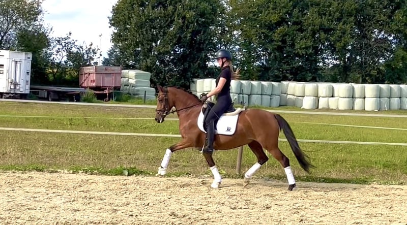 For sale is this wonderful expressive 4-year-old riding pony mare with FEI potential. Coco stands out not only for her excellent gaits but also for her character and rideability. In daily work, she always shows motivation, allowing for the playful integration of first L-level lessons into her training. From a sporting perspective, she is a true dream pony and ready to follow in the footsteps of her big brother (Chocoversum). Due to her excellent pedigree and sport-successful lineage, she is also interesting for breeding. However, we can also imagine Coco well in a mother/child duo. German Riding Pony Born in 2021 Approx. 146 cm Cosmopolitan x FS Dior de Luxe Full sister to Chocoversum (Vice Bundeschampion) Association premium mare Placed in A-level dressage A video can be sent upon request. For further details, please feel free to contact us for a personal conversation. Calls only after 4 PM 0174/ 7991486