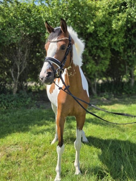 For sale is this striking daughter of Für immer Du. Colorful impresses daily with her balanced character and willingness to learn. Despite her young age of 3 years, she already shows a lot of composure and coolness in many, even unusual situations. She is currently being backed and has not made a single wrong step so far. Under saddle, she demonstrates a very rideable and eager-to-learn attitude, as well as being cool and focused. Here, a future children's pony with high basic quality in a special color is maturing! Trial rides possible by arrangement. Video under saddle available.