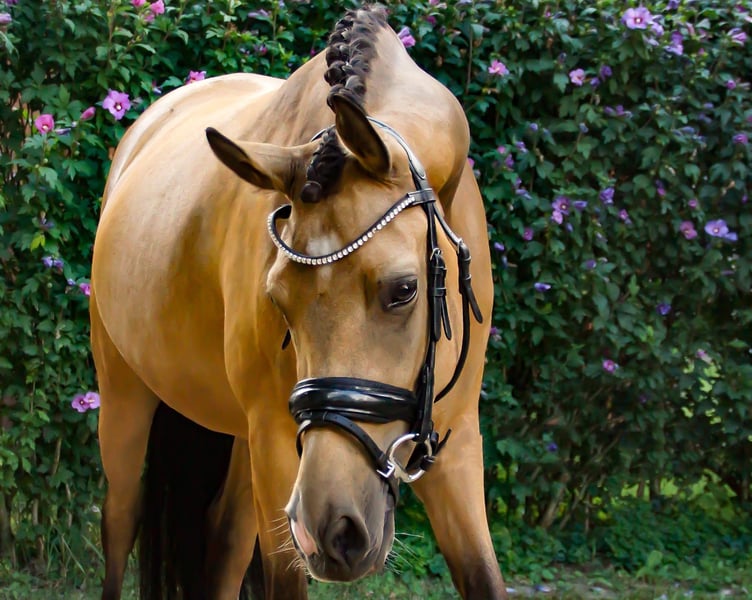 **Verkaufsanzeige: Deutsches Reitpony-Stute, geb. 2022, Falbe, 147 cm** Zum Verkauf steht eine charmante deutsche Reitpony-Stute, geboren im Jahr 2022. Mit ihrem eleganten Falbafarbton und einem Stockmaß von 147 cm vereint sie typische Ponyeleganz mit viel Potenzial für den Dressursport. Die junge Stute ist gut geritten, zeigt eine aufgeschlossene und freundliche Haltung und ist bereits in der Grundausbildung im Dressurbereich. Sie überzeugt durch ihre guten Grundgangarten,, eine ausgeglichene Persönlichkeit und eine solide Basis, die viel Raum für eine weitere Ausbildung bietet. Die Stute ist gesund, regelmäßig geimpft und entwurmt und befindet sich in einem hervorragenden Pflegezustand. Diese vielversprechende Dressurponystute ist ideal für ambitionierte Reiter, die eine talentierte Nachwuchshoffnung suchen, oder für Reiter, die eine zuverlässige Partnerin für den Dressursport aufbauen möchten. Bei Interesse oder weiteren Fragen stehe ich gerne zur Verfügung. Eine Besichtigung und Proberitte sind nach Vereinbarung möglich.