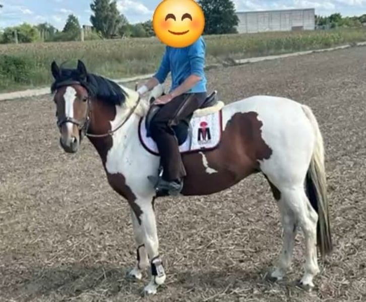 hübsche Reitponystute sucht ein Zuhause; sie ist auf der Koppel unter ihresgleichen groß geworden; vor einem halben Jahr eingeritten, seitdem nicht weiter gearbeitet; wesensstark und gutmütig, wie ihre Lewitzer Mutter, welche vor der Kutsche und unter dem Sattel bei meiner 11-jährigen Enkelin geht; leichtfüttrig, bei uns heißt sie liebevoll "Gänseblümchen"