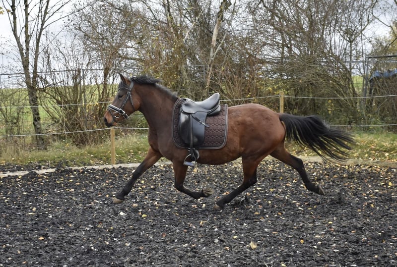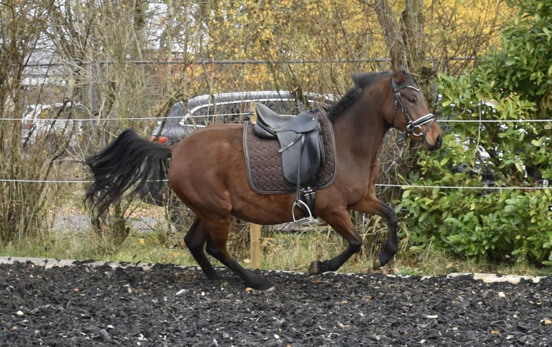 German Riding Pony - Mare with Excellent Movement For sale is a charming mare, a German Riding Pony born in 2021. This talented dark bay mare measures 148 cm and is ideally suited for dressage. She impresses with her appealing presence and strong character. Given her young age, she offers great potential for training and development in dressage. The mare has already gained initial experience handling riders. Due to her age, she is more suitable for experienced competitive riders or ambitious leisure riders who can provide her with the necessary confidence and guidance. If you are interested or require further information, please feel free to contact me. We invite you to visit and meet this wonderful mare in person!