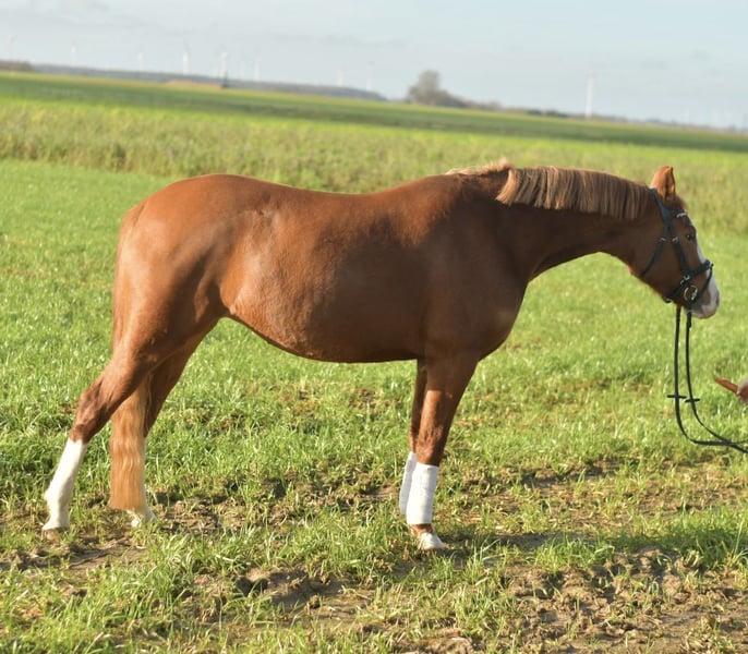 **Zum Verkauf: Calida – die liebevolle Reitpony-Stute!** Wir stellen Ihnen Calida vor, eine charmante deutsche Reitpony-Stute, die wir im Sommer roh bekommen haben. Nach einer kurzen Gewöhnungsphase haben wir nun seit drei Wochen das Vergnügen, mit ihr zu arbeiten. Calida zeigt sich bereits jetzt als wahres Talent: Sie läuft brav und sicher auf dem Reitplatz – ganz ohne Longe und sogar auf fremden Plätzen! Ihr ruhiges und freundliches Wesen macht sie zu einer idealen Partnerin, besonders für Kinder. Wir sind überzeugt, dass sie ein wunderbares Turnierpony werden kann. Zusätzlich hat Calida einen Röntgentüv ohne Befund und ist gesundheitlich einwandfrei. Auch im Gelände zeigt sie sich von ihrer besten Seite und meistert kleine Runden mit Leichtigkeit. **Vorreiten:** Das Vorreiten dieses tollen Ponys kostet 30 €. **Sonderangebot:** Bei sofortiger Mitnahme gewähren wir 5 % Rabatt auf den Kaufpreis! Wenn Sie auf der Suche nach einem liebevollen, talentierten Pony sind, das das Potenzial hat, ein echtes Kinderliebling zu werden, ist Calida die perfekte Wahl! Kontaktieren Sie uns für weitere Informationen oder einen Besichtigungstermin.