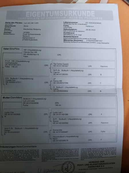 Ce jeune poney impressionne par ses trois très bonnes allures de base et une qualité de mouvement exceptionnelle. Il a déjà reçu une prime de poulain, ce qui souligne sa qualité et son potentiel. Le poney est extrêmement attaché aux humains, curieux et agréable à manipuler. Il apprécie l'attention et se réjouit de pouvoir établir un lien avec son nouveau propriétaire. Étant donné qu'il n'a pas encore été dressé, il offre une excellente opportunité de développer et de façonner un jeune talent de manière individuelle - idéal pour les cavaliers de loisir ambitieux ou les cavaliers de compétition qui recherchent un poney avec un bel avenir. Si vous êtes à la recherche d'un partenaire spécial qui souhaite grandir et apprendre avec vous, n'hésitez pas à me contacter !