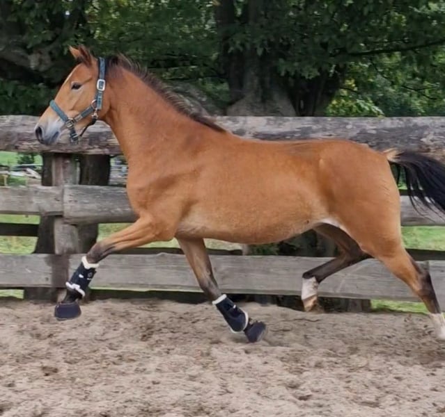 Deze jonge pony imponeert met drie zeer goede basisgangen en een uitzonderlijke bewegingskwaliteit. Hij heeft al een veulenpremie ontvangen, wat zijn kwaliteit en potentieel benadrukt. De pony is zeer mensgericht, nieuwsgierig en prettig in de omgang. Hij geniet van aandacht en kijkt ernaar uit om een band op te bouwen met zijn nieuwe eigenaar. Omdat hij nog niet getraind is, biedt hij een geweldige kans om een jong talent individueel aan te moedigen en te vormen - ideaal voor ambitieuze vrijetijdsruiters of wedstrijdruiters die een pony met toekomst willen. Als je op zoek bent naar een speciale partner die samen met jou wil groeien en leren, neem dan contact op!