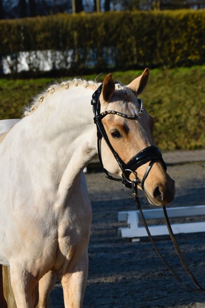Zu Verkauf steht diese bildschöne 5-jährige, 144cm große Stute von D-Gold AT x FS Numero Uno. Mit viel Ponycharme und Ausdruck beeindruckt diese im Hengsttyp stehende Stute auf den ersten Blick! D‘Amour überzeugt mit drei sehr qualitätsvollen Grundgangarten, insbesondere einem herausragenden Trab mit viel Grundschwung und Mechanik. Sie ist wunderbar konstant in der Anlehnung und sehr harmonisch im Seitenbild. Im Umgang und unter dem Sattel ist sie artig und aufgeschlossen, aufgrund ihrer lernwilligen Einstellung und ihrer hervorragenden Qualität bietet sie sich perfekt zur Ausbildung zum FEI-Pony an! Es liegen gute Röntgenbilder vor. ‼️Bei Interesse und für Videos bitte ausschließlich telefonisch oder über WhatsApp unter 017621729218 melden. Anfragen über ebay oder ehorses werden nicht beantwortet.‼️ Das Pferd wird nicht zur Verfügung gestellt und kann auch nicht auf Raten gezahlt werden.