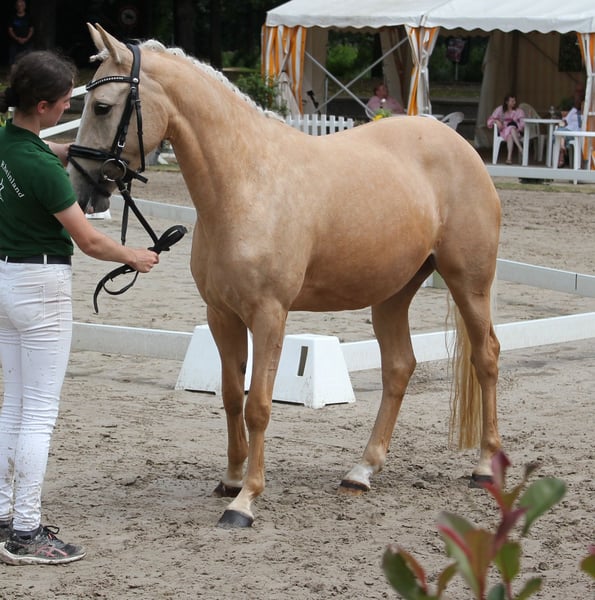 Verkaufe Deutsche Reitpony-Stute – Perfekt für Dressur! Zum Verkauf steht eine wunderschöne deutsche Reitpony-Stute, geboren im Jahr 2020. Sie besticht durch ihr elegantes Palomino-Fell und ihre beeindruckende Größe von 144 cm Stockmaß. Die Stute ist ideal für den Dressursport geeignet und zeigt viel Talent sowie eine angenehme Bereitschaft. Sie ist gut ausgebildet, aufmerksam und lässt sich leicht reiten. Bei Interesse oder für weitere Informationen stehe ich Ihnen gerne zur Verfügung. Ein Besichtigungstermin ist nach Vereinbarung möglich. 01722527384 https://www.gestuet-boenniger.de/antigone-b