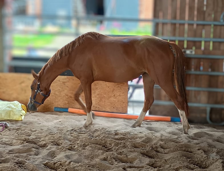 Hallo zusammen, aufgrund von Bestandsreduzierung steht unsere liebe Deutsche Reitpony Stute "Hazel" zum Verkauf. Name: Goldbachs Tanzmusik "Hazel" Rasse: Deutsches Reitpony Vater: Double Jackpot Mutter: Verb.Pr.St Kastanienhof Sternentanz Farbe: Fuchs mit vier drei weißen Beinen Größe: ca. 1,45 Geboren: 29.04.2021 Ausbildungsstand: Roh (noch nicht geritten) Unsere "Hazel" hat volle Papiere/ Abstammung + Eigentumsurkunde. Interessant als zukünftiges Nachwuchspony für Reiten/ Zucht oder auch zum Fahren. Keine Krankheiten/ Lahmheiten/ Allergien bekannt. Bei ernsthaftem Interesse gerne melden. Liebe Grüße