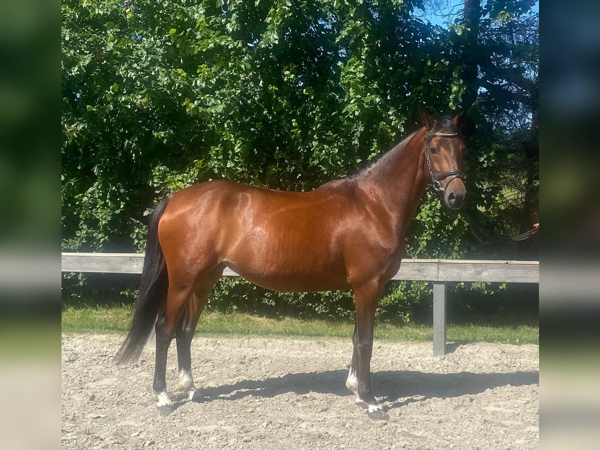 **Sales Advertisement: German Riding Pony Mare** For sale is a beautiful, talented mare of the German Riding Pony breed. **Features:** - **Breed:** German Riding Pony - **Gender:** Mare - **Year of Birth:** 2021 - **Color:** Brown - **Height:** 147 cm This charming mare shows great potential in jumping and is suitable for both experienced riders and ambitious beginners who wish to further develop their skills. She is well-mannered, easy to handle, and has a friendly character. The mare is healthy, regularly vaccinated, and dewormed. She has already gained initial experience in training and shows a lot of joy and willingness to perform. If you are interested or have further questions, please feel free to contact me. Viewings and trial rides are possible by arrangement. We look forward to your message!