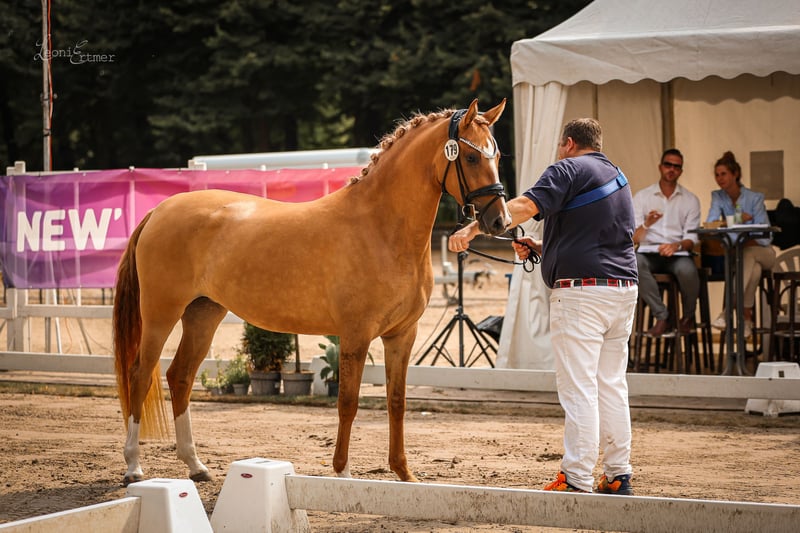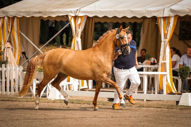 **Advertisement for sale: German riding pony mare** For sale is a beautiful German Riding Pony mare, born in 2021. She was awarded the state premium at the Wickrath Week in 2024 and advanced to the reserve champion mare of the 3rd year old mares in the final ring. She is a jewel for breeding and sport. She is ideally suited for ambitious leisure riders as well as for competition sport. She is a pure half-sister to the two licensed stallions Dating Point AT and Dark Champagne AT. If you are interested or would like further information, please do not hesitate to contact us.