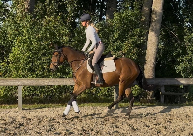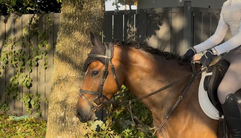 For Sale: German Riding Pony Mare A beautiful and talented German Riding Pony mare is available for purchase. **Features:** - **Breed:** German Riding Pony - **Gender:** Mare - **Year of Birth:** 2021 - **Color:** Brown - **Height:** 14.8 hh This charming mare impresses with her friendly nature and excellent jumping ability. She is suitable for experienced riders as well as ambitious beginners looking to develop their skills in show jumping. She already shows significant potential and is well-trained. She is easy to handle and has a pleasant temperament. If interested or for more information, please feel free to contact me. A trial ride can be arranged by appointment. We look forward to your message!