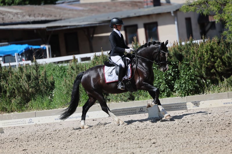 This beautiful 5-year-old riding pony mare is available for sale. She possesses impressive, above-average conformation and movement. Thanks to her strong willingness to collect and her ample spirit and talent for advanced dressage movements, she is the perfect partner for the big arena. Currently, she has completed Level M dressage training. She is also ready to be used as a future FEI pony. For her age, she is very easy to ride and offers a very comfortable contact. She measures 148 cm with shoes. - Eye-catcher - Convincing movement quality - Riding pony mare by Designed in Black AT - Multiple wins in Dressage Pony Levels A and L, only competed against larger horses - 148 cm with shoes - Light-footed, easy to sit - Good X-ray results available - Born and raised in Austria For further information, please contact us by phone at 017622388605.