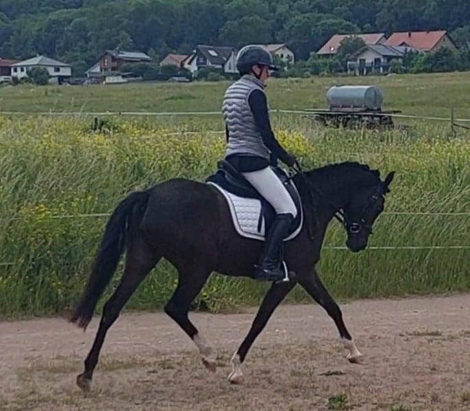 Einmalige Gelegenheit, wegen Zuchtumstellung bieten wir die exquisite Zuchtstute zum Verkauf an. Angel war 6 Monate in Beritt und ist seitdem Zuchtstute, sie war 3. zur Elitestutenschau und Siegerstute der SLP, dabei konnte sie insbesondere beim springen und der Rittigkeit punkten. Sie hat ein sehr gutes Rapphengstfohlen bei Fuß vom PH No Problem und ist von diesem wieder tragend.. Angel wird nur wegen fehlenden Reiter und Zuchtumstellung abgegeben. Sicherlich auch ein sehr gutes Reitpony wenn man sie wieder an trainiert. Ein Verkauf inkl. Fohlen ist sofort möglich, auch eine Rückgabe des Fohlens wäre denkbar.Farbe ist übrigens Smokey Black, konnte man nicht auswählen