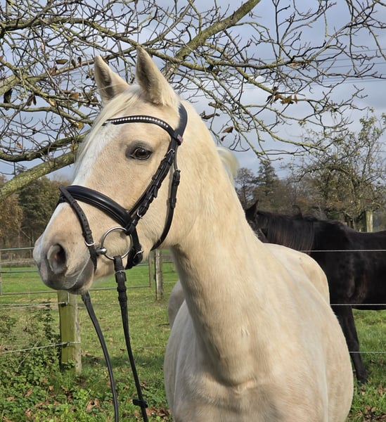 Calise SI ist eine ca. 148 cm große Deutsche Reitponystute mit ausgezeichneten Papieren. Sie wird natürlich noch etwas wachsen und auslegen. Sie stammt von Vater: Cassini, FS Cocky Dundee, Go Go Girl/Be my Crazy Girl, Spring Star´s Spirit, Beyonce. Calise kommt direkt vom Züchter, Sie wurde vor kurzem schonend angeritten und durfte vorher in der Herde wachsen und gedeihen. :-) Calise hat Potenzial für Dressur und Springen, wobei man bei Ihr wirklich hervorheben muss, das Sie ein absolutes Kinderpony ist. Sie hat einen 1 A Charakter, Sie ist sooooo lieb und ruhig bei allem. Solche Ponys sind rar, Calise ist eine absolute Rarität !!! Bisher war Sie immer gesund, bei Kaufinteresse kann gerne ein Tüv gemacht werden. Für mehr Infos, freuen wir uns auf Anrufe unter: 0177/2721831.