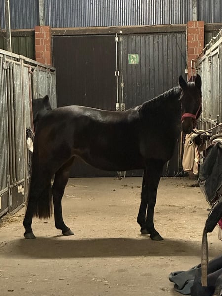 Brillant is a solidly trained, sensitive mare with great potential for both sport and leisure riding. She is confident off-road, eager to work, and enjoys dressage and jumping. She also demonstrates a clear head and a calm demeanor during fox hunting, combined with the necessary drive. Thanks to her movement and her calm, balanced temperament, she would also be very well suited as a hunter pony. She responds sensitively to aids and therefore requires a calm, balanced rider who can provide her with confidence. In daily handling, she is very well-behaved, straightforward, and affectionate. A versatile, easy-to-ride pony with a pleasant character – ideal for ambitious riders seeking a young horse with a solid foundation and development potential. Please feel free to contact us with any questions or if you are interested!