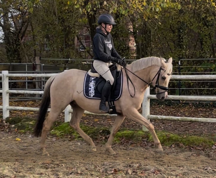 We are offering our beautiful, sweet pony mare for sale with a heavy heart. She is exceptionally gentle and affectionate in handling, very human-oriented, and loves cuddles. She has an excellent pedigree and, accordingly, possesses very good basic gaits. Under saddle, she is very motivated, displays a great work attitude, and moves forward with enthusiasm. She is very easy to sit and simply a pleasure in every aspect and area. She is kept with us in a small mixed herd and tends to be lower in the pecking order. She has never been ill a single day during her time with us. She measures approximately 1.48 meters (about 15.2 hh). She loads calmly onto the trailer, stands nicely for the farrier, and is neither spooky nor tense for her age. Buckling, rearing, or other bad habits are unfamiliar to her – she always wants to do everything right and please her handler. Of course, with further training, she has the potential to become an FEI pony for the big arena – but does every good pony have to become an FEI pony? We wish for our little mare to find a 5-star home where she is regarded as a family member, not just a sport horse, and where she receives the love, cuddles, and attention she deserves. We are not in a hurry to part with her. Due to her friendly, fearless nature and her good breeding, we can very well imagine her as a children's pony or, ideally, as a mother-daughter pony with further training. If you are genuinely interested, please feel free to contact us via WhatsApp at: 016097233628.