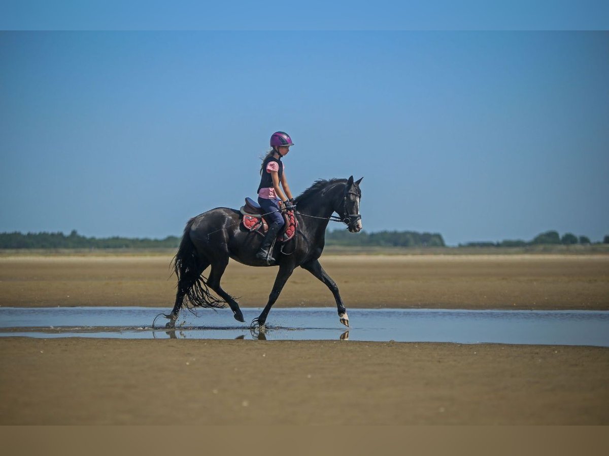 For sale, directly from the breeder, is this typy 5-year-old pony mare. Bred from KentNaganoWE, out of a Massai dam. Strikingly pretty jet black, "KönigshofsKleineNachtmusik" additionally impresses with her priceless character. She is unconditionally friendly towards everyone - a promise of happiness every day! The mare has been gently backed and consistently trained for her suitability as a children's pony. She forgives noticeable clumsiness from the rider and is always eager to do things right. Kiki is often ridden by younger horse friends and always shows a kind disposition. She allows her little pilots to catch her, groom her, and prepare her for riding. She does well in adjusting to the needs of her rider, being careful and considerate. The charming mare has already experienced her first taste of competition and has safely carried her little rider through the events. The pony enjoys a versatile basic training - she goes out in a group calmly, works in various riding arenas, and is always eager to listen to her rider. There are no issues with loading, the farrier, or the veterinarian. An honestly charming pony that is uncomplicated in handling and care. She is familiar with both individual box systems and robust group housing in open stables. Even after a few days off, you won't need a gun license for this riding pony mare. Intelligent, yet with hardly any arrogance, she approaches new situations with openness. Throughout her life, she has shown no signs of resistance - she serves in the facility as a teaching horse in double lunge lessons and groundwork. This pony is particularly recommended for family combinations: mother-daughter constellations with a lot of joy in versatile and safe equestrian sports. Registered as a competition pony and fully vaccinated, nothing stands in the way of the current season. I wish for this beautiful mare a species-appropriate housing and a focus on an honest partnership. This pony is remarkably reliable and eager - for this, continued species-appropriate housing and varied training are required. Despite her balanced temperament, she remains a pony sport partner - this is a living being. This pony is not available for lease. She is gladly sold including her dressage saddle and all other accessories - even without a saddle, the price does not change - there is only a minimal room for negotiation - even if she does not have golden hairs in her tail. An X-ray certificate has been created (without findings); should a new one be required, the buyer will bear the costs - a clinical examination will be arranged and paid for by me as part of the contract - a confidentiality waiver for the existing veterinarian will be issued. We charge €50 for a trial ride. Of course, grandparents/aunts/uncles can be brought along to this appointment, but not everyone will be able to sit on her! In my facility, no rider is allowed to ride out alone; this is also not a criterion that our ponies must fulfill - however, the mare confidently goes with children alone to remote and unknown riding areas, and in the terrain, she goes bravely ahead or follows behind. Within Germany, I am very happy to transport this pony to her new home. To the best of my knowledge and belief, this mare has been raised and trained very thoughtfully - she is a healthy, well-socialized riding pony, ready for immediate use as a versatile sport and leisure partner in the common classical riding styles. Genuine interest is best expressed by phone to discuss all arising questions in detail from both sides.