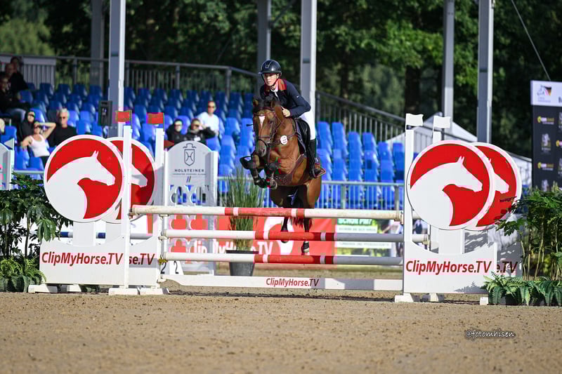 We are offering our homebred, five-year-old, stunning, successful, and expressive show pony mare, *Noblesse Oblige FHH*. She has already competed successfully in numerous jumping competitions at the A* and A** levels, consistently earning high scores. In 2025, she qualified for the German Pony Championships for five-year-olds, where she received consistently excellent evaluations. Noblesse is very brave, ambitious, and completely unfazed by external influences in the arena. She is always willing to work and eager to perform, and her sporting attitude indicates she should be further developed and supported. In handling, Noblesse is very well-behaved, easy to load, and lunges reliably. Out on forest rides, she proves to be as dependable as in the show ring. She jumps over logs and crosses streams and water without hesitation. Additionally, Noblesse has three very good basic gaits. She is familiar with turnout in both groups and alone; she is open-minded and friendly towards farriers and veterinarians, as she is with all people. Due to her age and training level, Noblesse is not suitable for beginner riders. Noblesse has an exceptionally sportily interesting pedigree: Her sire, *FS Numero Uno*, is highly successful in dressage competitions up to S-level and has numerous successful offspring in top-level sport. Her dam, *Deydoo L*, was successful as a young horse at the Bundeschampionat and achieved countless victories and placements over many years, including international success in the advanced pony class at M** level, culminating in the German Pony Championships. *Deydoo L* consistently demonstrated maximum reliability alongside her enormous ambition and top attitude. After her career in high-performance sport, she has successfully supported many of her offspring in their start in show jumping. Noblesse’s half-brother, *Doctor Strange*, is highly successful in pony jumping competitions in Poland.
