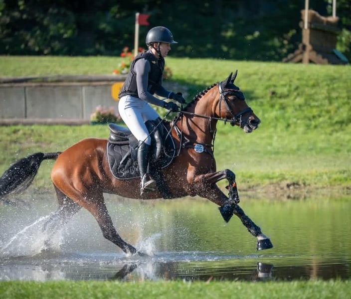 For sale is the 6-year-old mare Coer Noblesse (Coer Noble x Las Vegas) with a height of 1.46 m. Connie impresses with very good basic gaits, good rideability, and an excellent jumping technique. She is a very athletic pony that is quick and reliable, especially at the jump. Connie is an exceptional pony that has already achieved great success at a young age. She was the winning pony of the final qualification for 5-/6-year-old eventing ponies at the Bundeschampionat 2025 with an overall score of 8.7. Additionally, she has won show jumping classes A against large horses and has already been confidently presented in show jumping class L. Last weekend, she also won the show jumping class A with a score of 8.4. Unfortunately, she did not place in the final at the Bundeschampionat because she did not cross the start line in the cross-country phase and had to be disqualified. In daily handling, she is a true heart pony. She is well-behaved, affectionate, and uncomplicated. Connie is used to being ridden by children and remains calm and honest throughout. She has no vices such as bucking or rearing and is very good with kids. She is in the mid-range of the price category and has good X-rays from last year. If you are interested or have further questions, we look forward to your call at 015732463127.